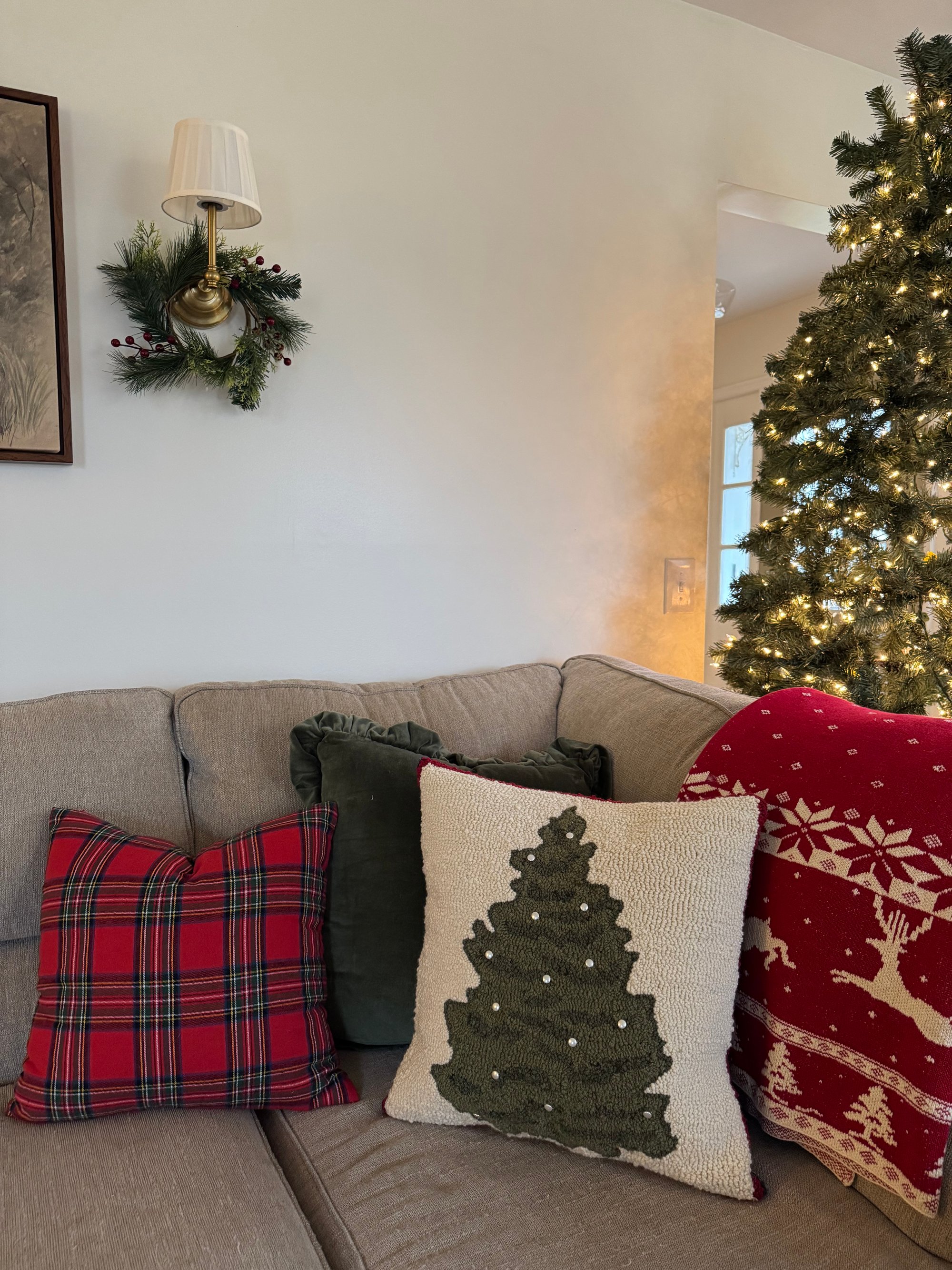 This 100% and tufted pillow measures roughly 19” x 19”.