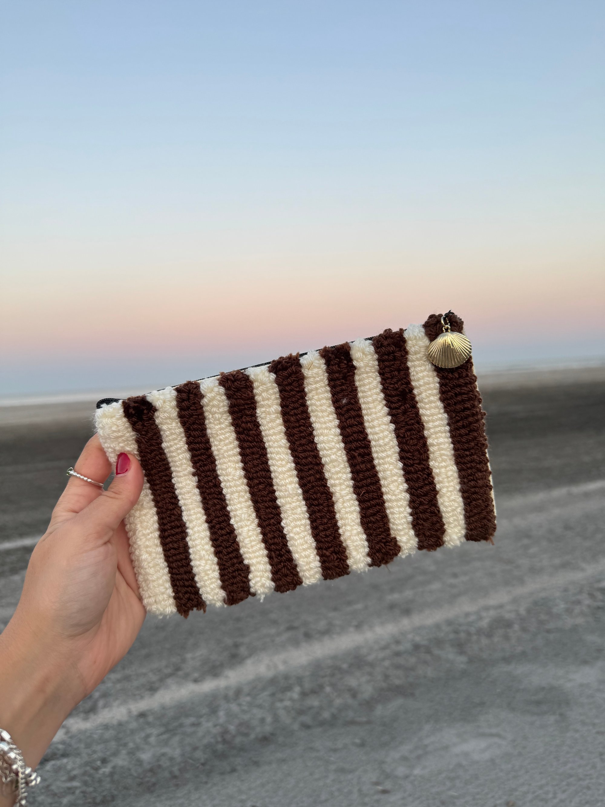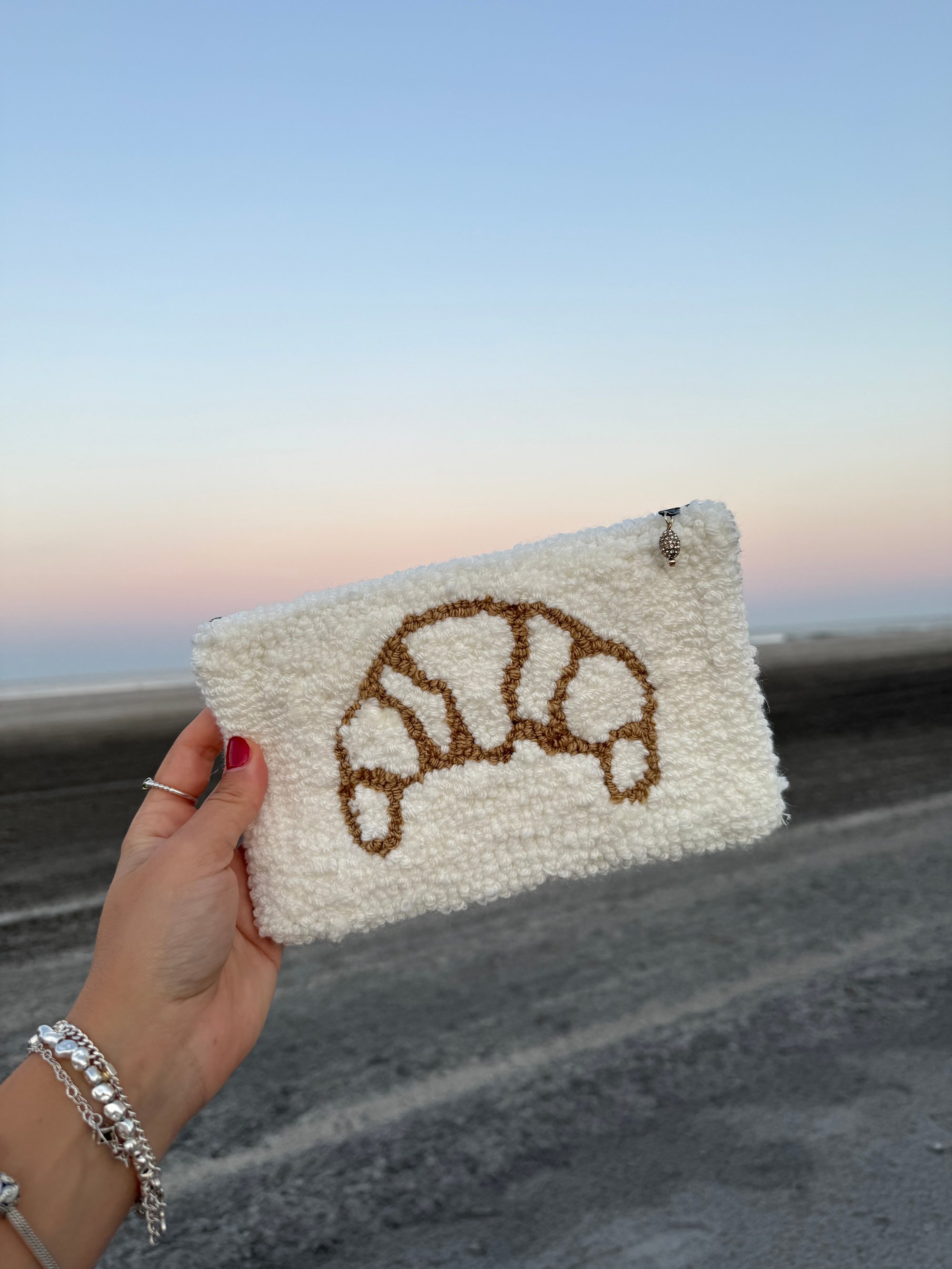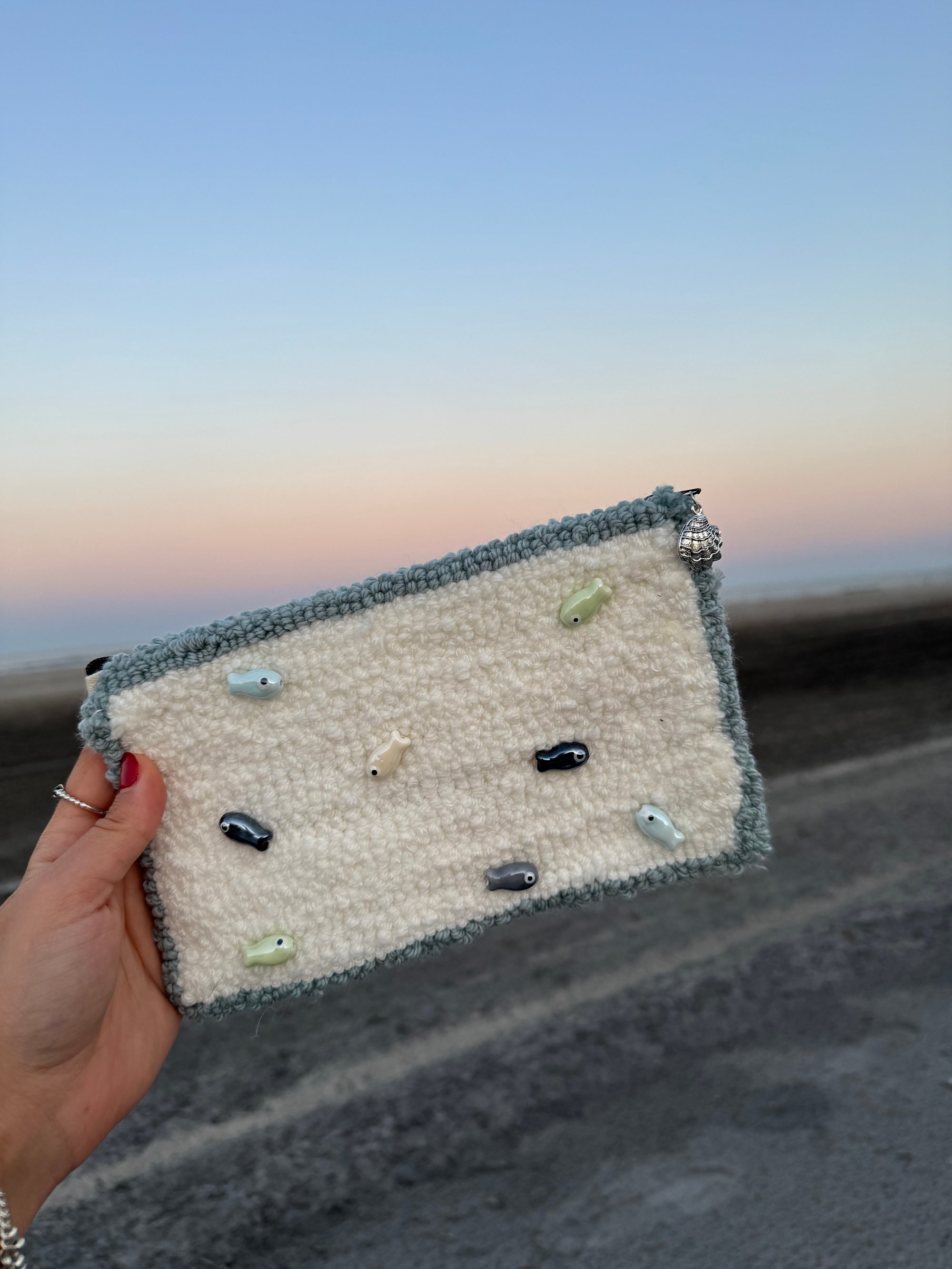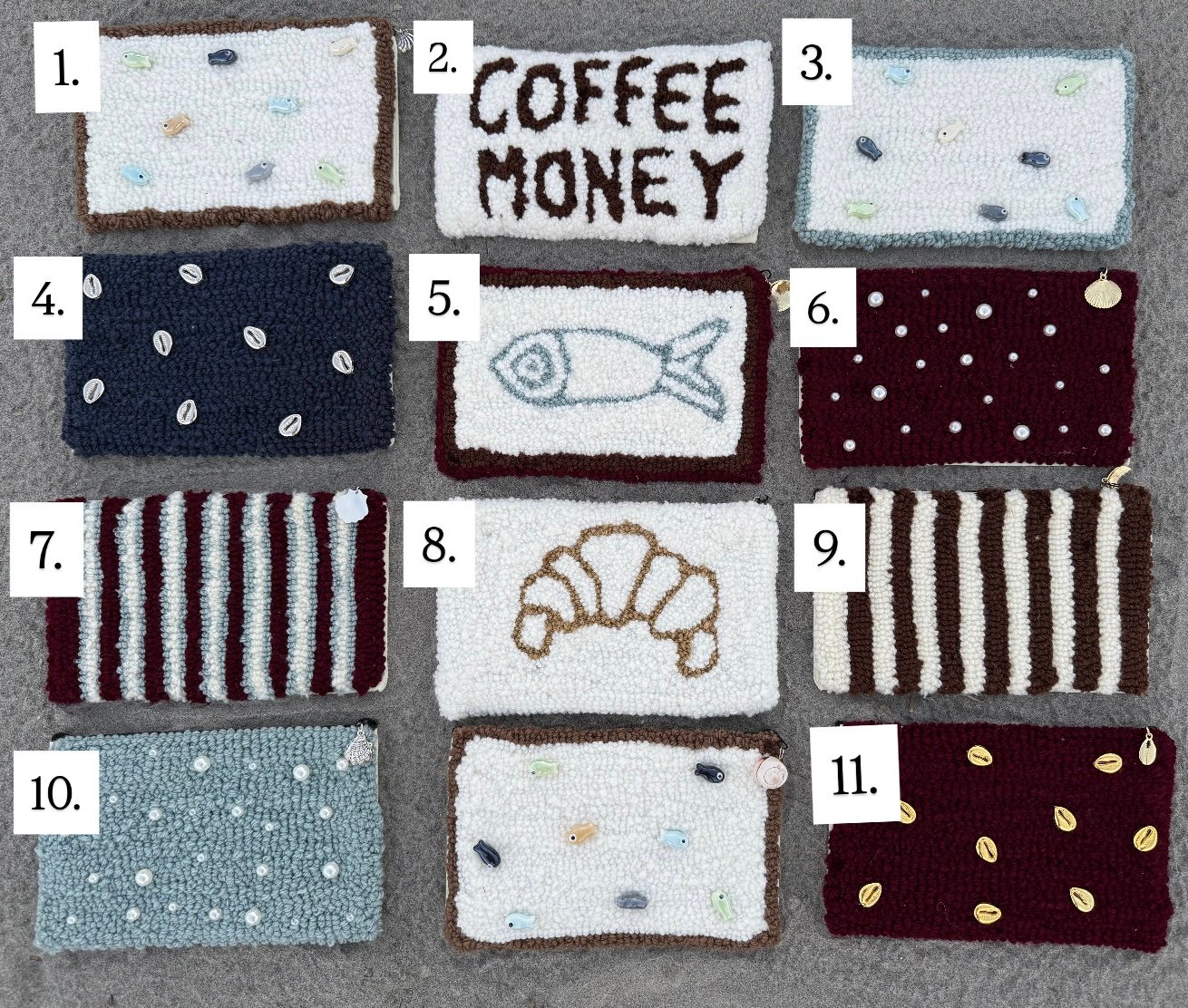 These hand tufted change purse wallets measures 9” x 4”, and they each have their own unique charm attached to the zipper.