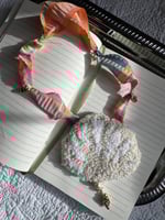 All car charms measure roughly 4 “ and are hung by ribbon or beads.