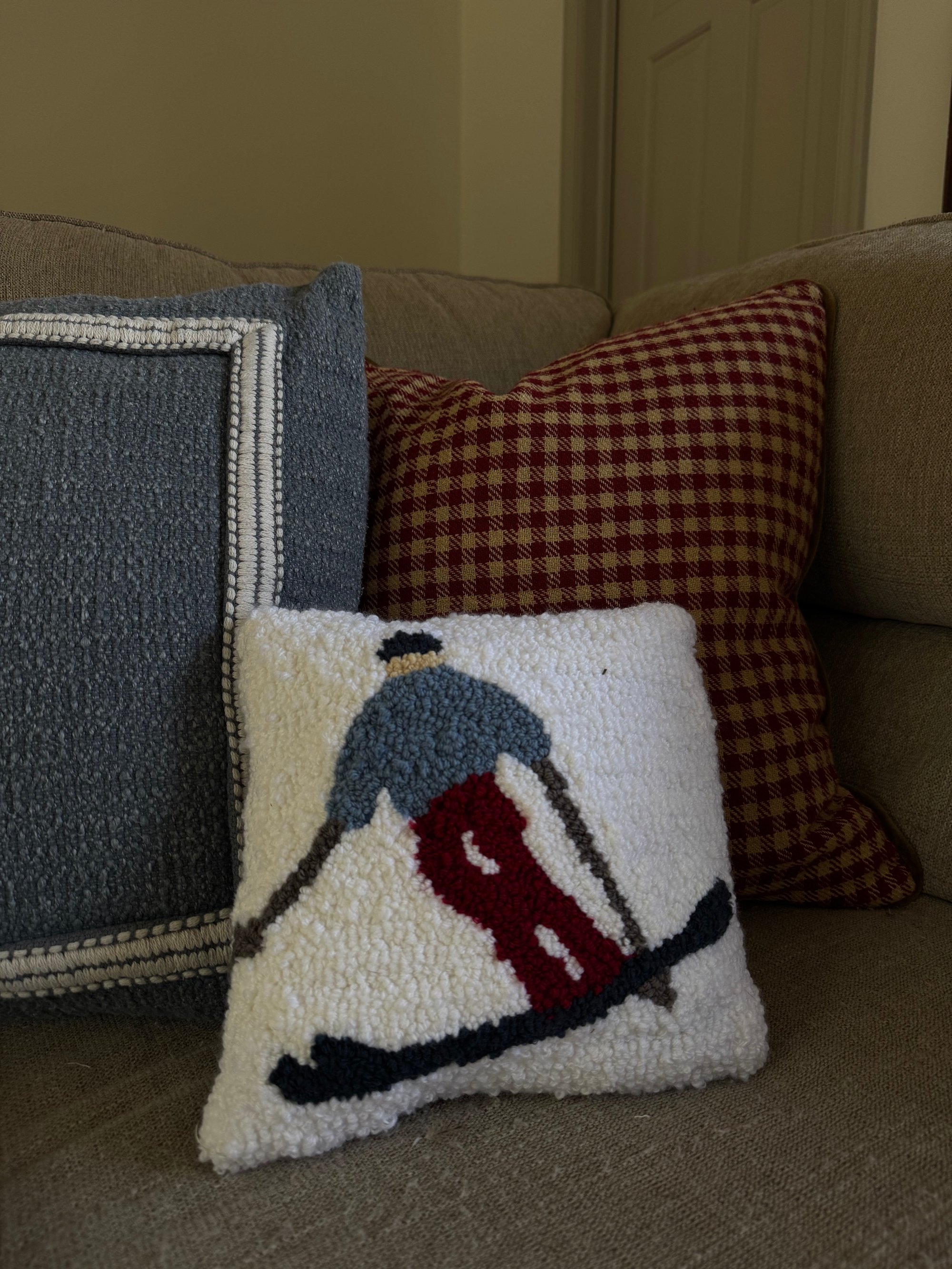 This 100% and tufted pillow measures roughly 9” x 9”.