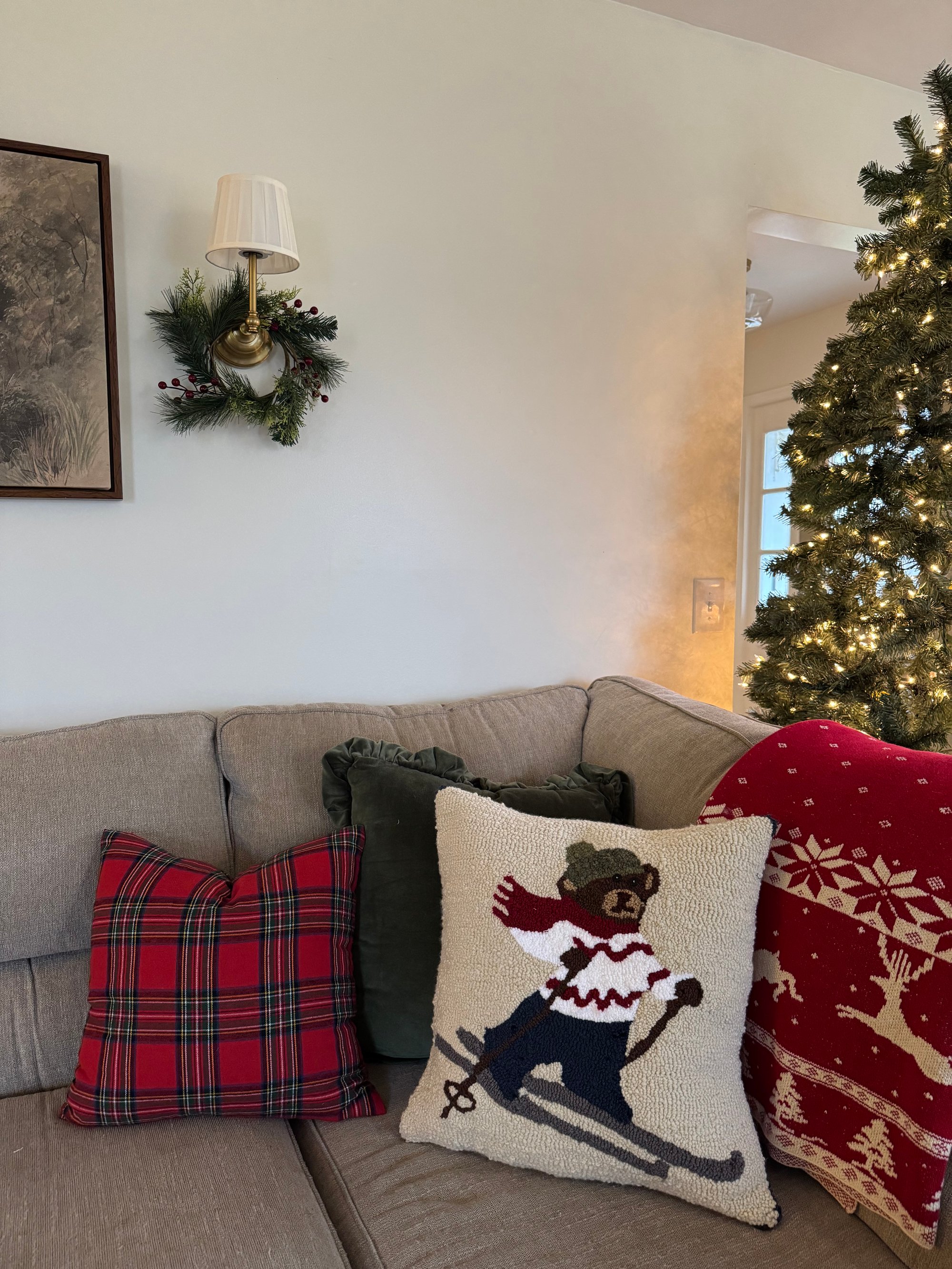 This 100% and tufted pillow measures roughly 19” x 19”.